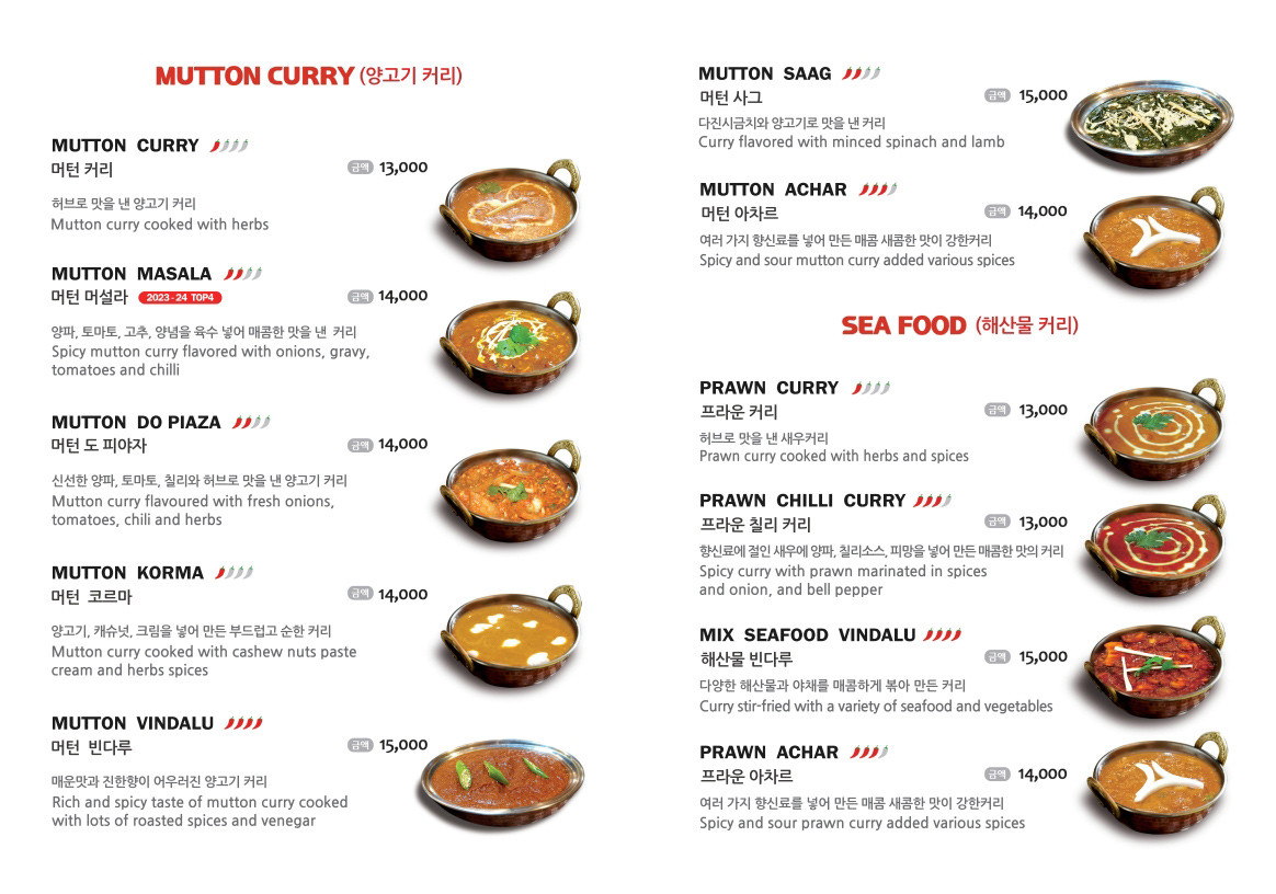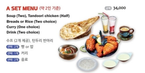 선택했고, 커리는 머턴 코르마, 음료는 플레인라씨,