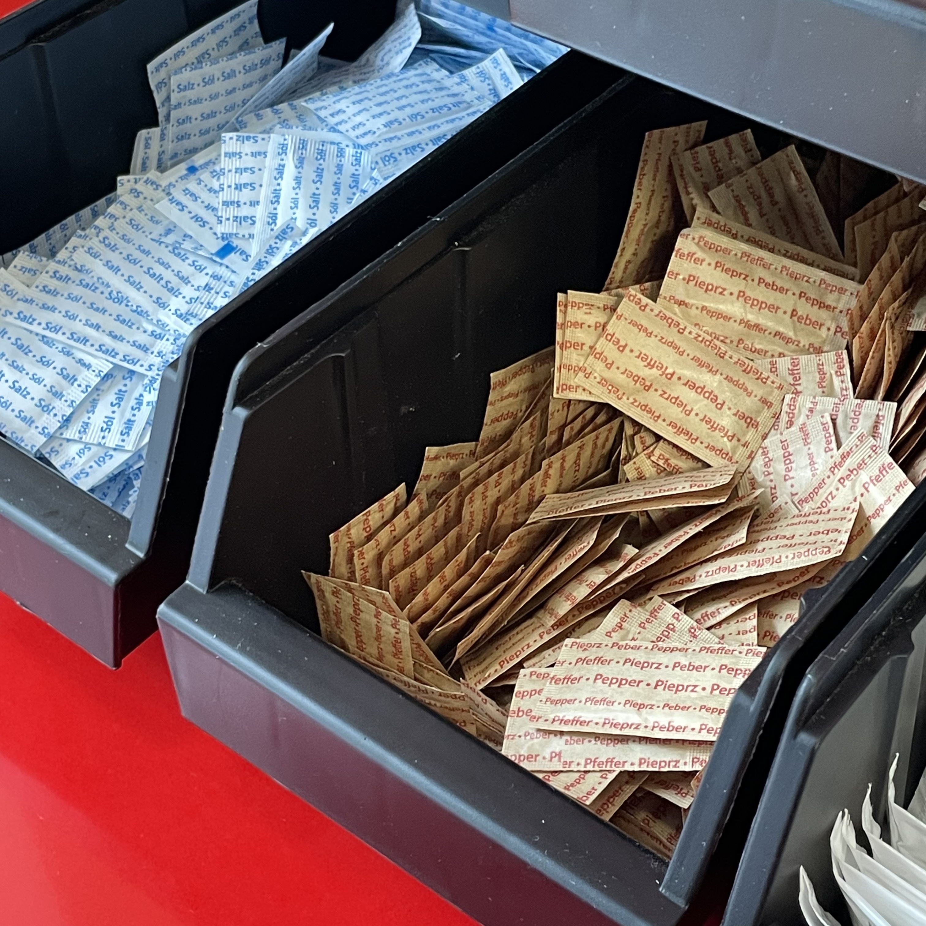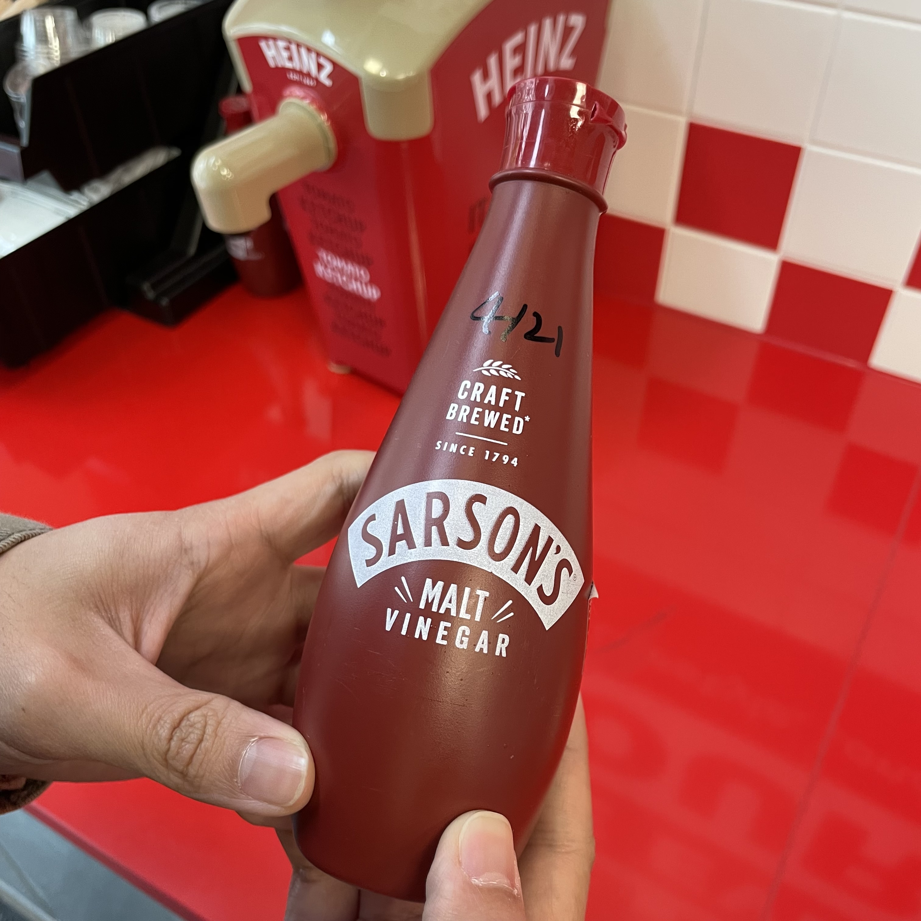 맥아 식초가 구비되어 있었고, 소금과 후추도