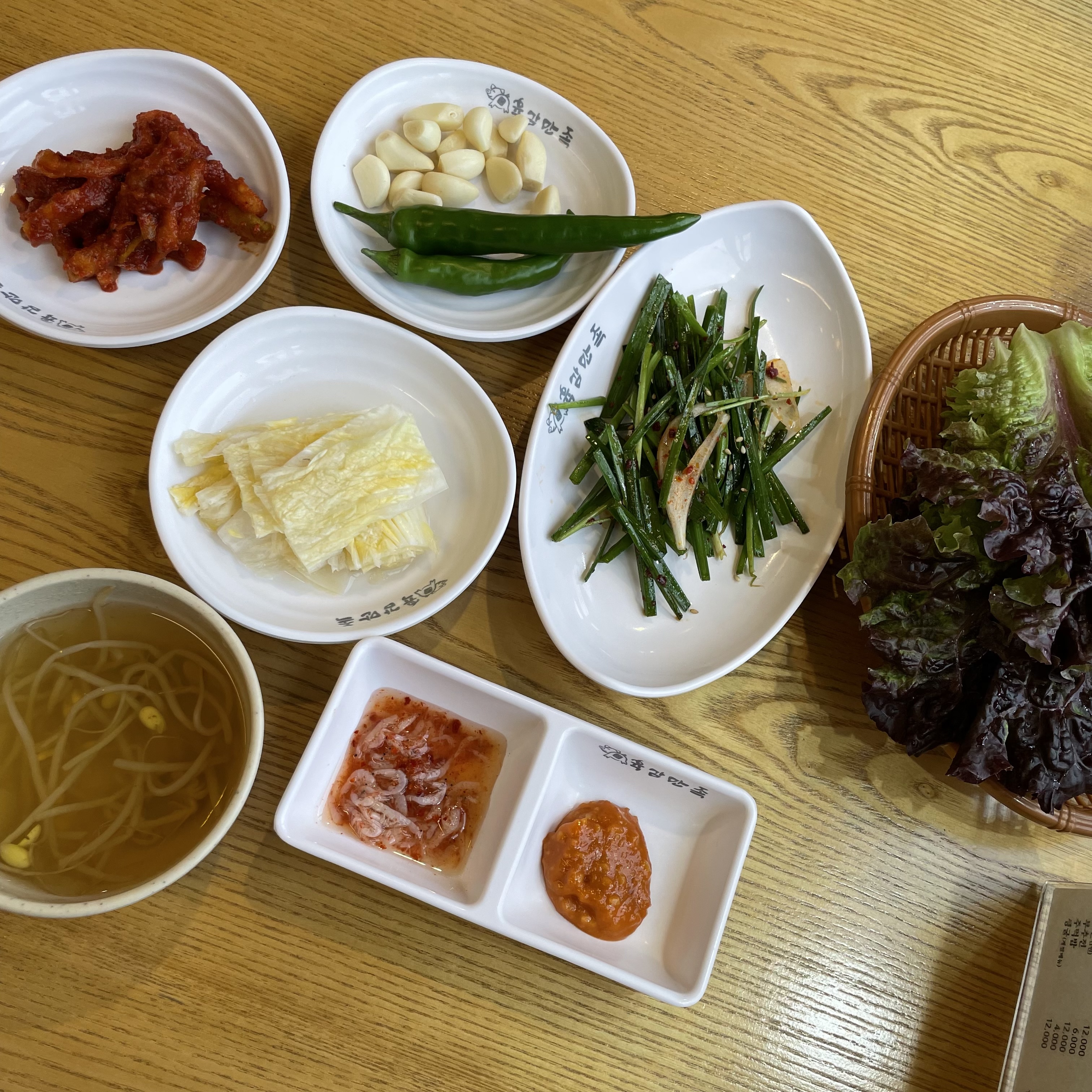 상추가 준비되었고, 밑반찬들은 모두 다