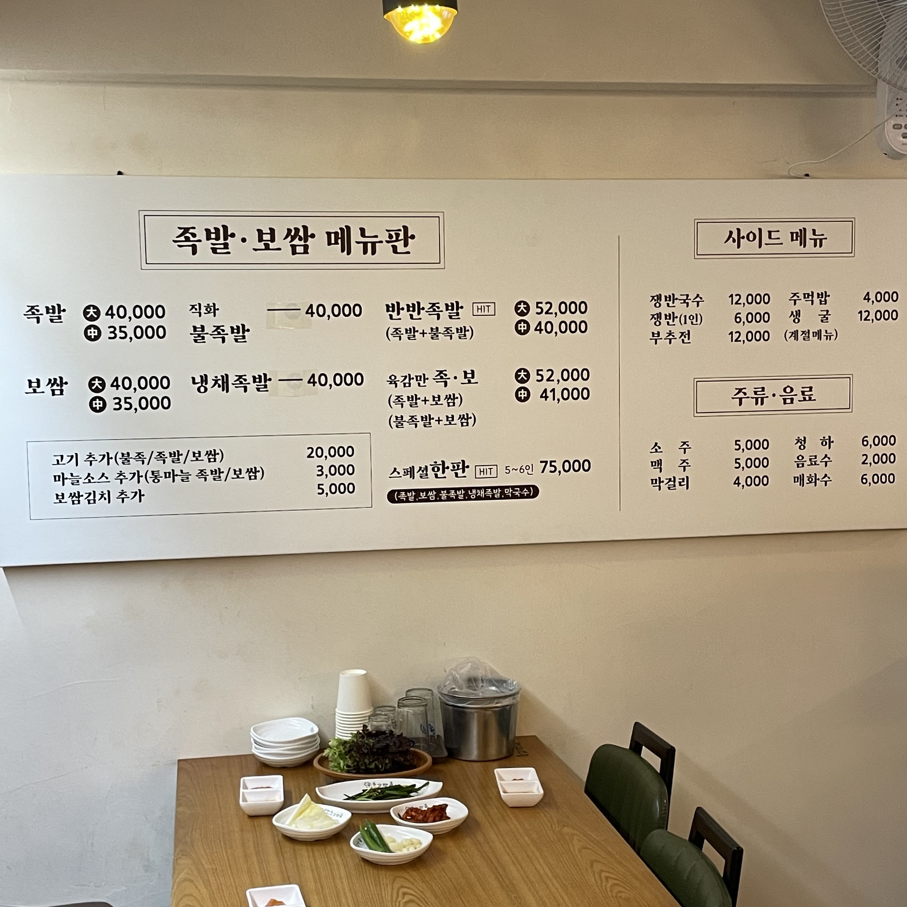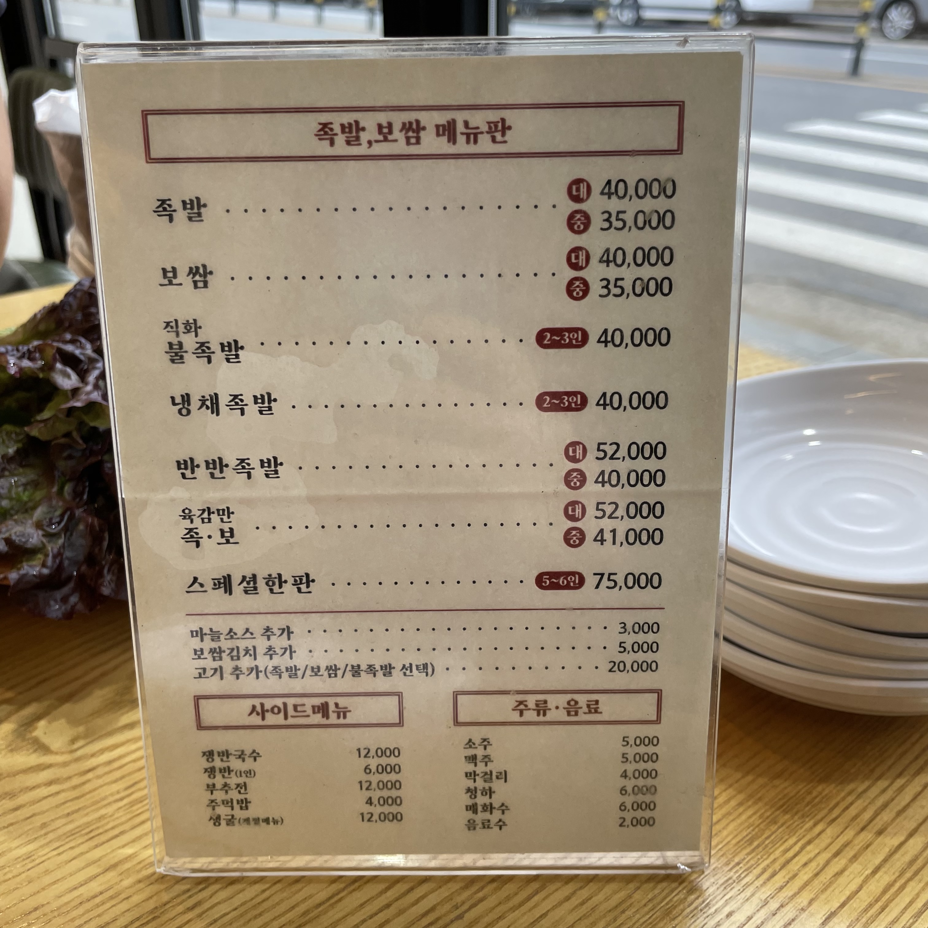 저희는 7명이 방문했기 때문에 족발(大),