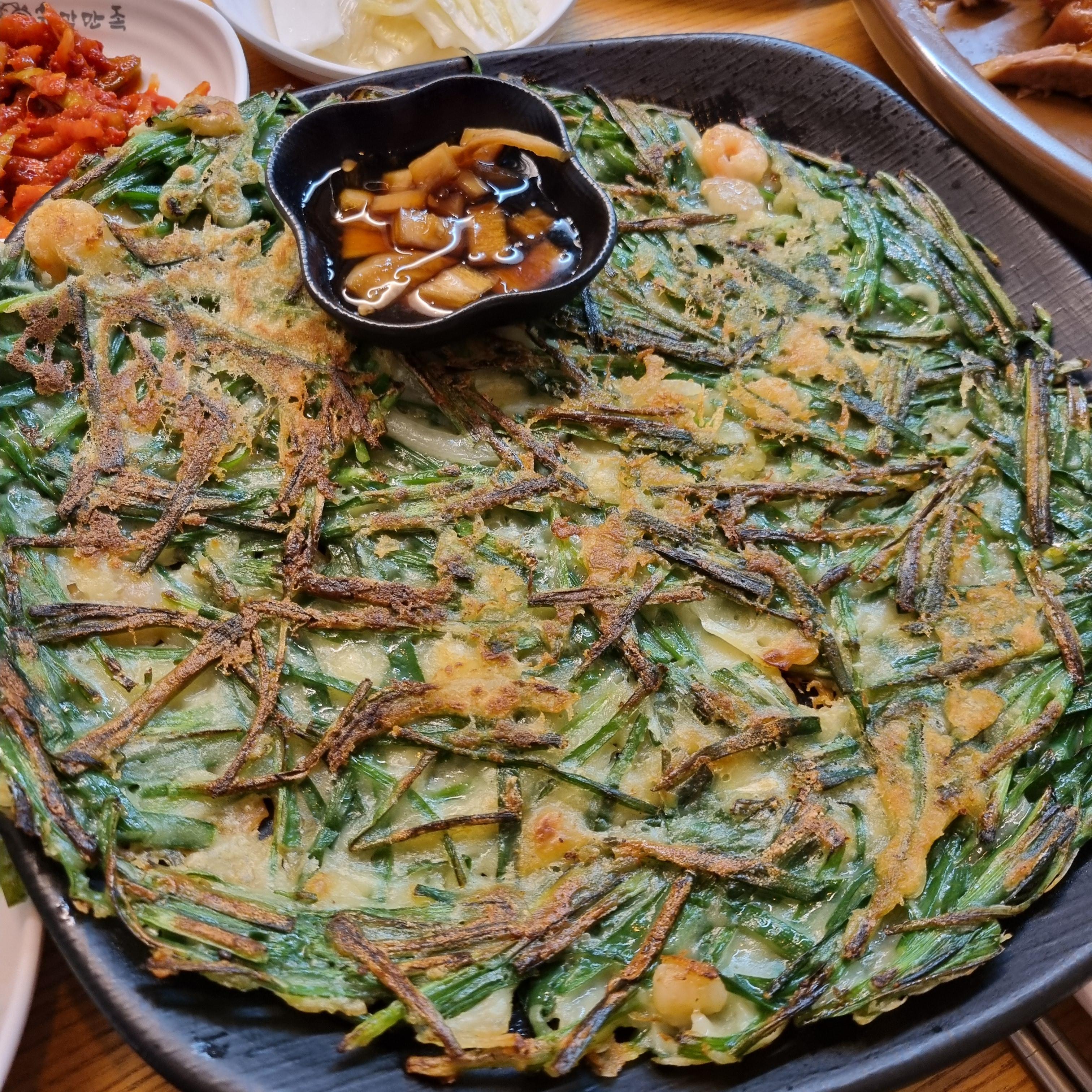 부추전은 칵테일 새우가 들어가 있었고,