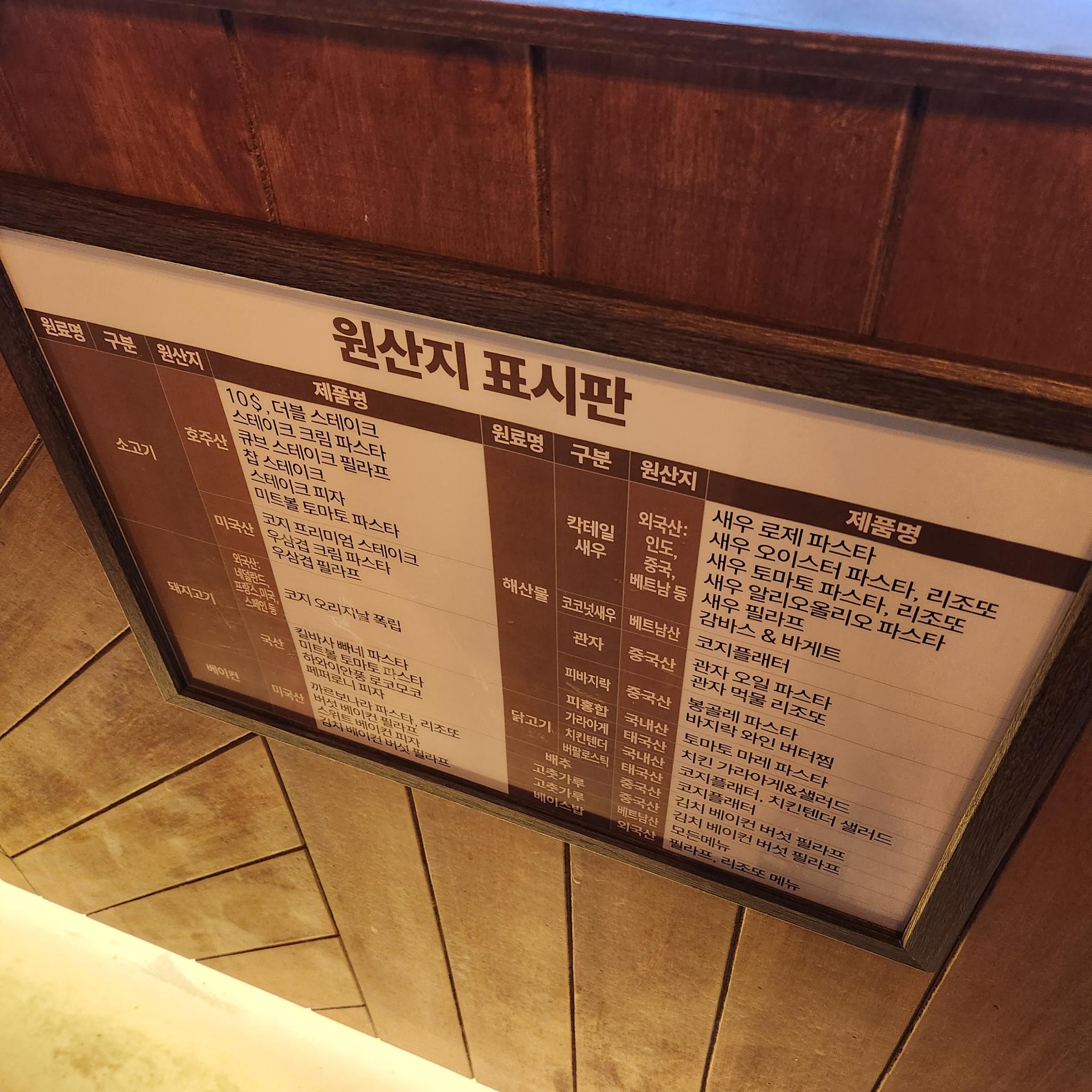 재료 원산지 표시도 잘 되어 있었고,