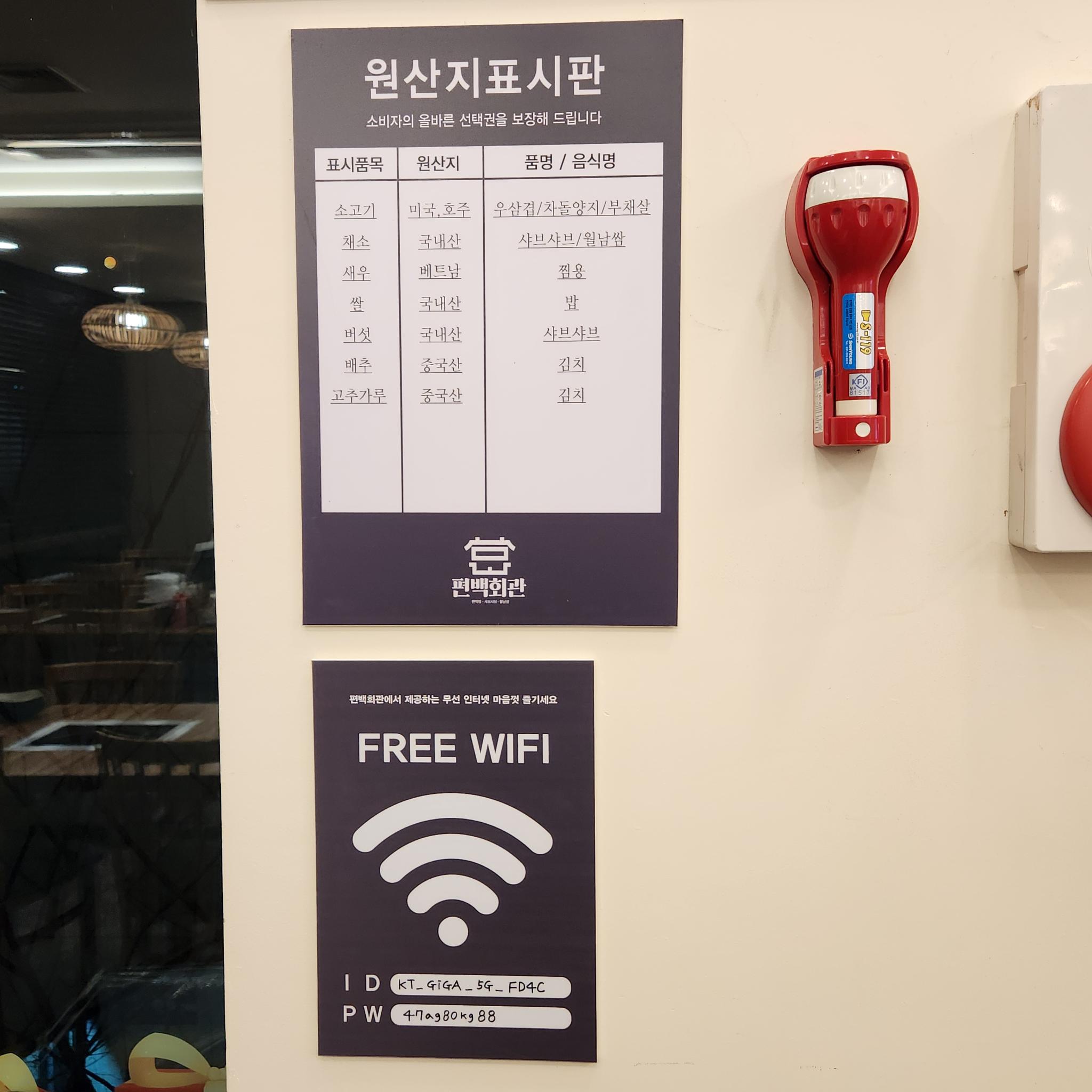 이용 안내와 원산지 표시, 와이파이 안내도