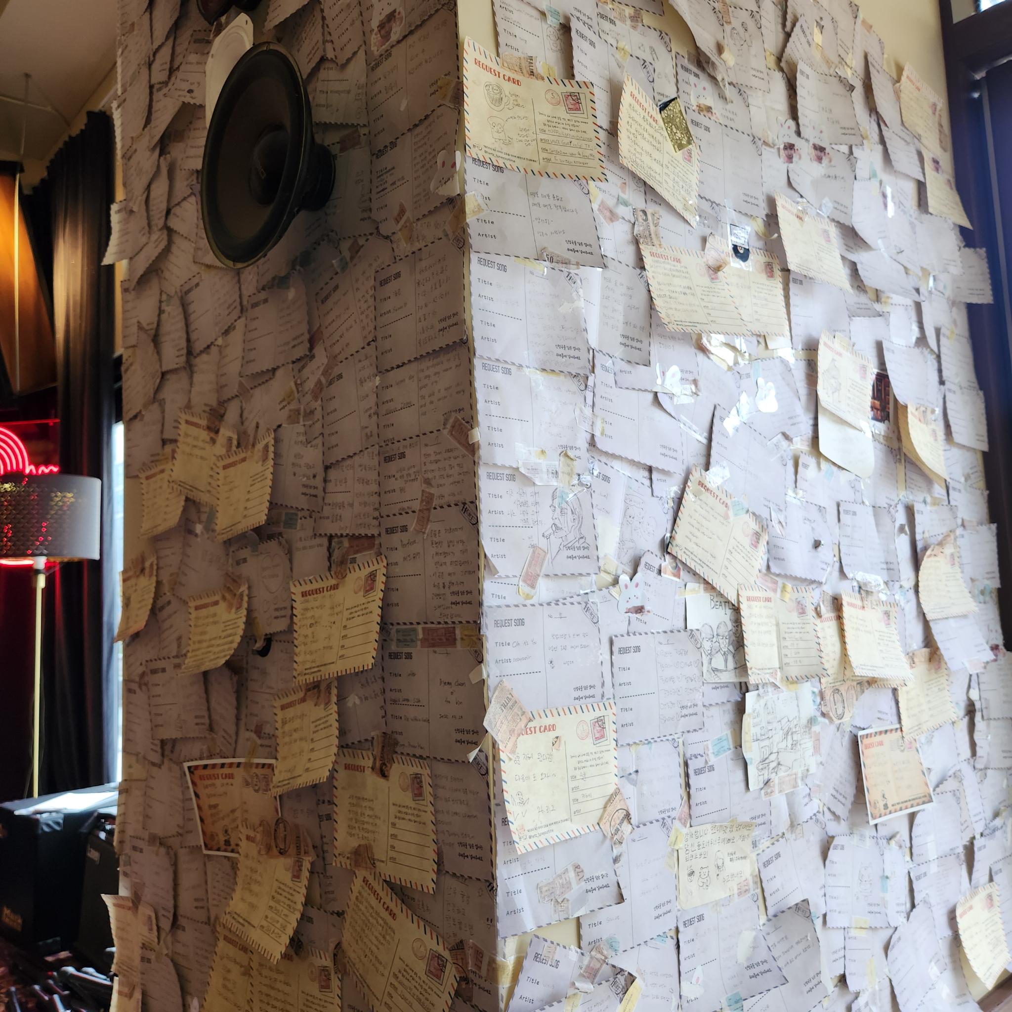 이곳은 주문 태블릿 옆에 걸려있는 신청곡 종이가