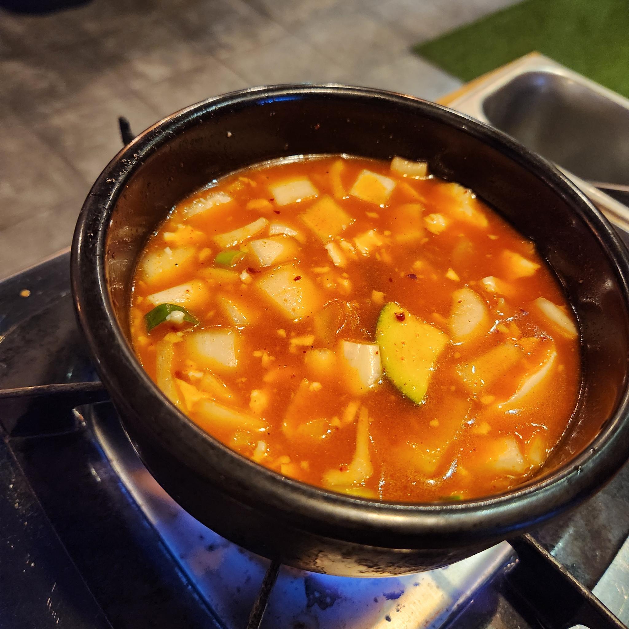 육회와 얼큰한 순두부찌개가 나왔습니다